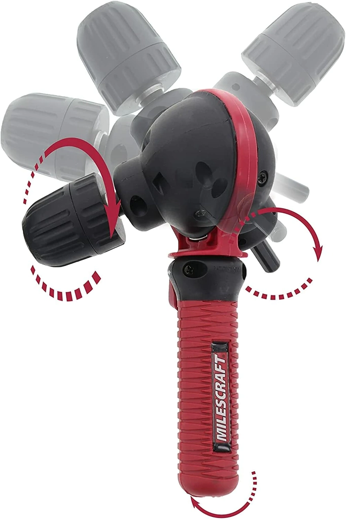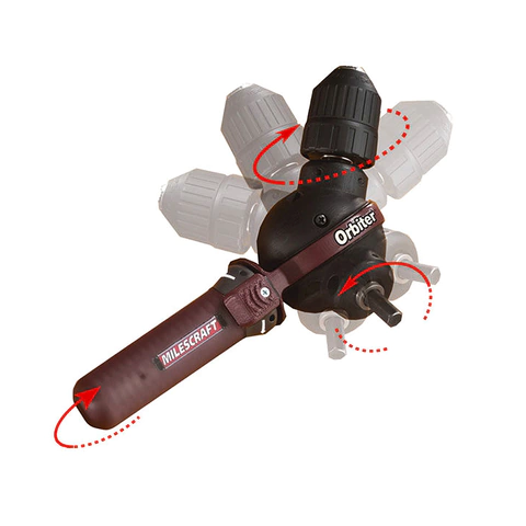 * Milescraft Orbiter es un diseño patentado! Podés colocar la mecha en cualquier ángulo para entrar en un número infinito de ángulos o posiciones, lo que permite perforar en áreas a las que no se puede acceder con un taladro estándar. Establecé el ángulo de perforación y girá la manija para asegurarla en su lugar. Invertí el mango para desbloquear.