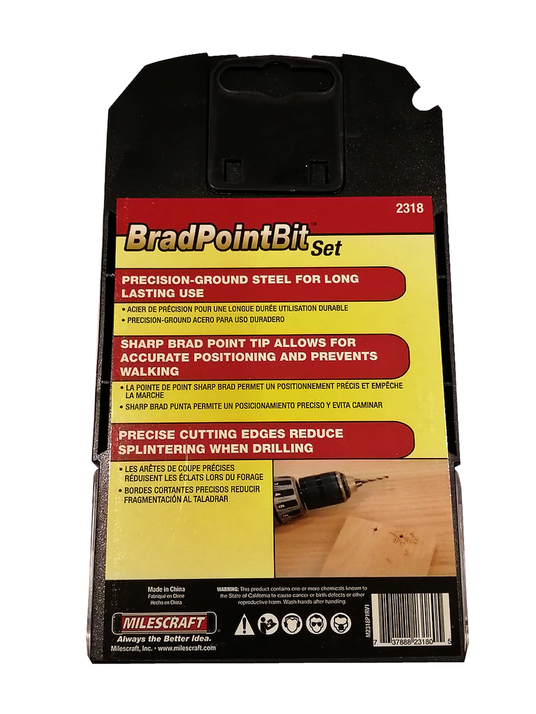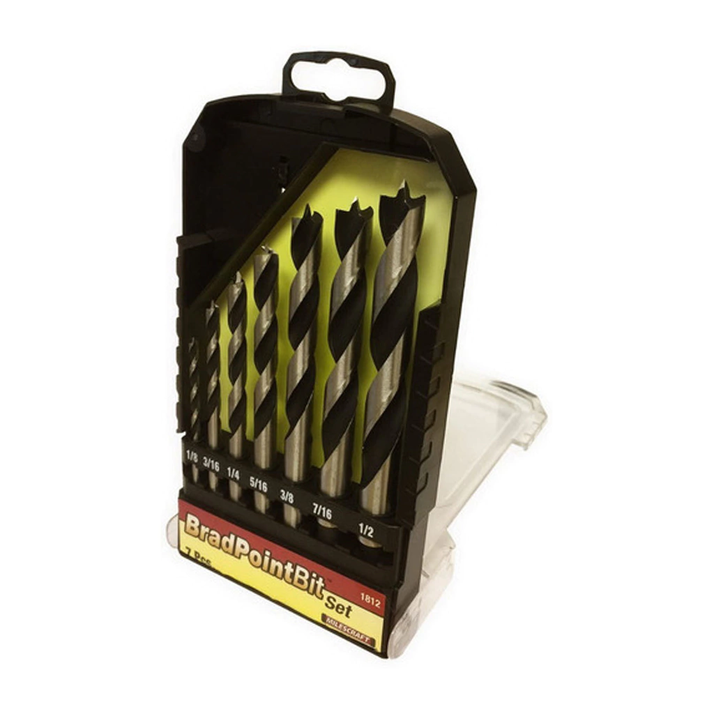 - Las mechas punta aguja o brad point permiten un posicionamiento preciso evitando el desplazamiento de la misma sobre la pieza de madera brindando un corte limpio y sin desfasajes.